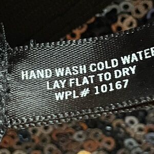 Black. Exposed zipper in back. Elastic waist. Lined. Perfect for that trip to Vegas! Won’t take up much room in your bag.