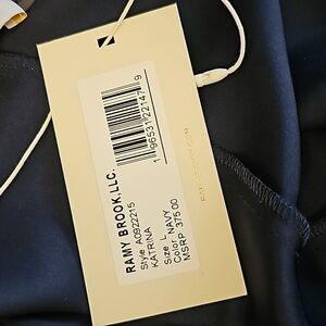 Ramy Brook Navy Blue Katrina Tie Neck Bell Sleeve Blouse - Size Large