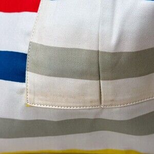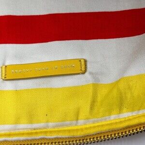 Coated neoprene with the classic Dreamy embossed pattern from Marc by Marc Jacobs. Cotton lining in a stripe pattern with two pockets. Unzips on two sides, zipper pull also locks in place. Small spots on exterior as shown, light wear on pockets.