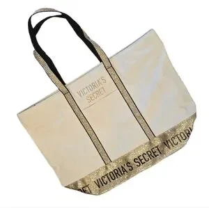 Victoria's Secret Cream & Gold Sparkle Tote Bag