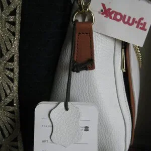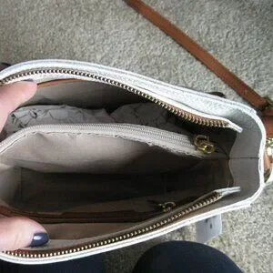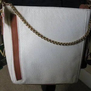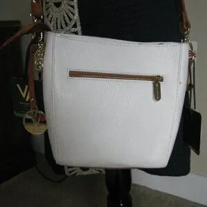 Valentina peeble white leather X-body bag w/ brown leather trim NWT Spring wear