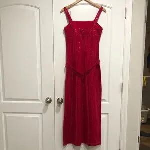 This elegant dress is fully sequined, has a back zipper and a removable hook closure belt.
