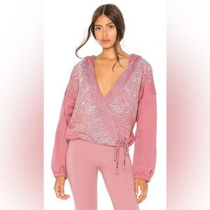 Free People Movement White Embroidered Sashiko Wrap Hoodie Sweatshirt