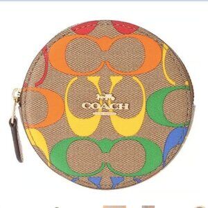 NEW! RARE Coach Gallery Rainbow Pride Purses Bag Coin Circle Wallet Womens 🌈