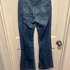 Stylish and comfortable women's flare blue jeans. Perfect for any casual occasion. Mid rise and super soft