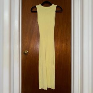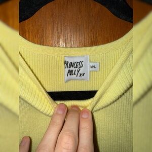 *Only worn once!* Princess Polly Kara Midi Dress. Chic light yellow ribbed sleeveless dress with a stylish cutout design. Perfect for a bold fashion statement. SIZE: M/L