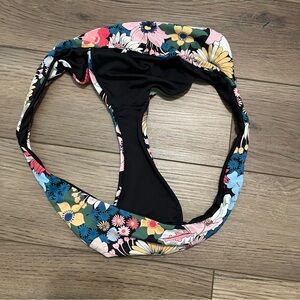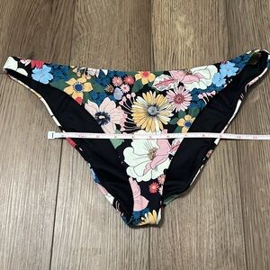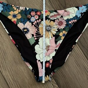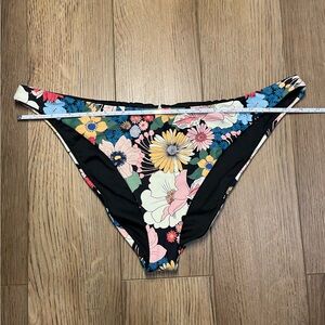Cute retro style floral bikini bottoms with a black base. Perfect for a stylish beach day.