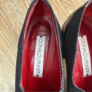 Donald J. Pliner Alice Black Dot Square Toe Chunky Block Heel Loafer Women's 8.5 Narrow