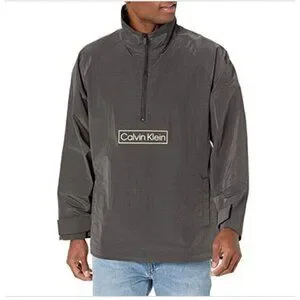Calvin Klein Mens $148 Relaxed Fit Box Logo Popover Jacket Size L Black