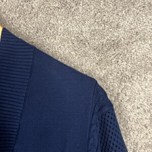 Faith & Zoe Cardigan Sweater Womens Medium Navy Blue Mesh Long Sleeve Open