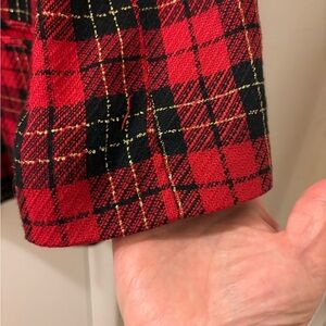 Stylish plaid jacket in vibrant red and black. Perfect for adding a bold touch to your outfit.