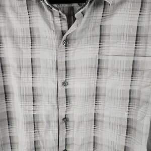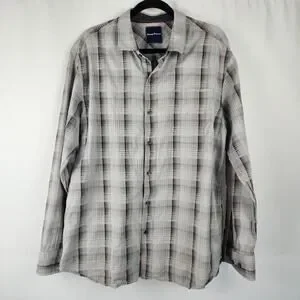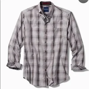 Tommy Bahama Gray Plaid Silk Cotton Blend Long Sleeve Button Up Shirt Men's XL