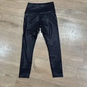 EUC Beyond Yoga Heather Rib Black Shine High Waisted Midi Legging Size XS