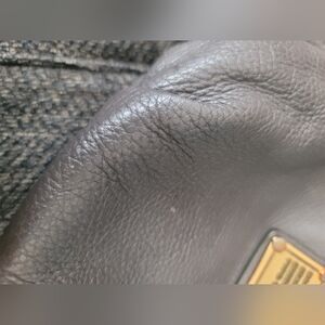 Overall excellent condition. Interior has minor discoloration, and exterior has a worn spot that needs to be conditioned periodically to match the rest of the bag color (has already been done, will last a little while, see close up of where leather looks smooth). Exterior has one tiny spot, see close up. Comes from a pet friendly, smoke free home.