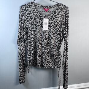 Guess Women's L NWT Leopard Sheer Long sleeve Sparkle Guess Logo Top