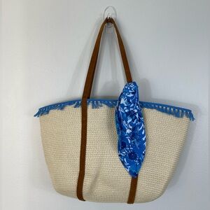 Women’s Beach Tote Bag Basketweave Tropical NEW