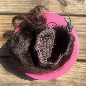 This Luxy Neutral Brown clip-in bun is 14 inches in length and weighs 60 grams. Worn several times over the past few years, never heat styled. I wish it still matched my hair! Make me an offer!
