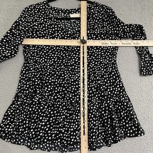 MAEVE White Black Polka Dot Peplum 3/4 Sleeve Blouse Womens Small