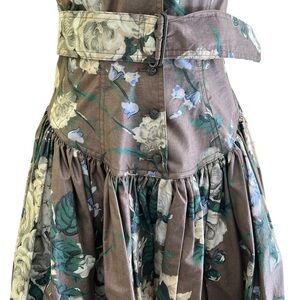 Rhonda Harness Foxy Lady Vintage Taupe/White Floral Cotton Halter Dress 8