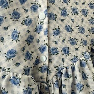 Vintage floral midi dress long sleeve prairie size L XL handmade gingham…