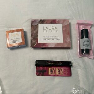 Laura Geller makeup set featuring a variety of beauty products. Includes mascara, foundation, and more. Perfect for enhancing your look.