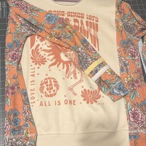 Upcycled Billabong Graphic Sweatshirt with Floral Sleeves