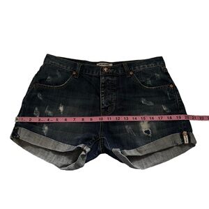 One Teaspoon | Chargers Dark Wash Distressed Cuffed Denim Shorts Size 27