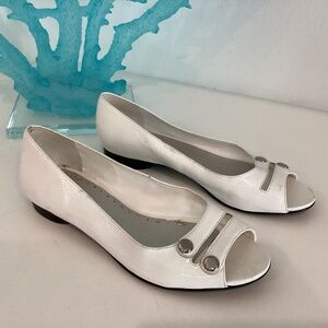 Michelle D White Patent Leather open toe slip in shoes flats Sz 6 M