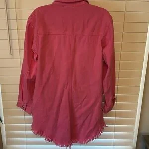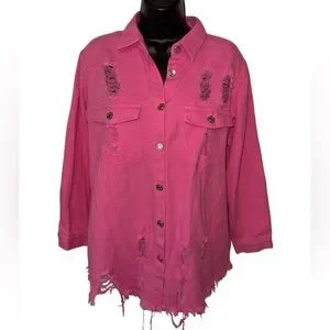 J. NNA Hot Pink Distressed Denim Shirt Shacket