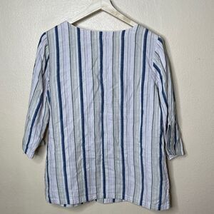 Tommy Bahama large linen blend top stripe Silver Metallic Boho 3/4 SLEEVE LACE