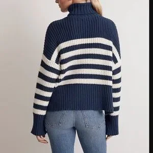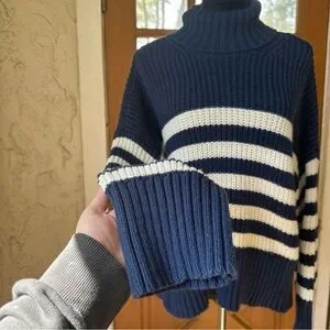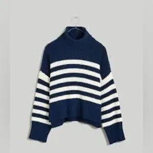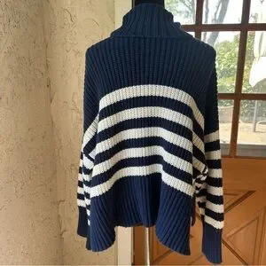 Madewell Striped Knit Navy and White Size XL Turtleneck Chunky Sweater
