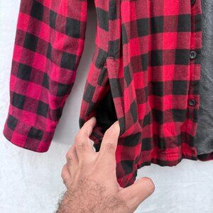 LL Bean Shirt Mens L Red Buffalo Plaid Fleece Line Shacket Traditional Button Up