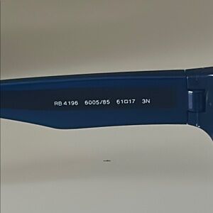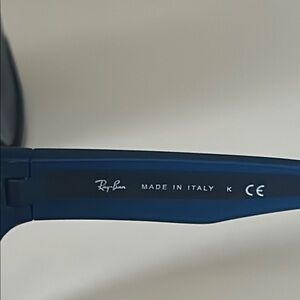 Stylish Ray-Ban sunglasses in a sleek blue frame. Comes with a branded case and cleaning cloth.