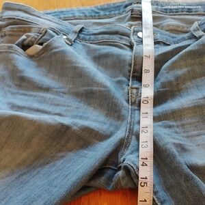 These blue straight leg jeans offer a timeless denim appearance with a medium blue hue and subtle fading for added depth. The full-length design and soft fabric ensure comfort and style for any casual occasion. Size 18. Small flaw as shown in last photo. Might be fixable with a stitch or 2.