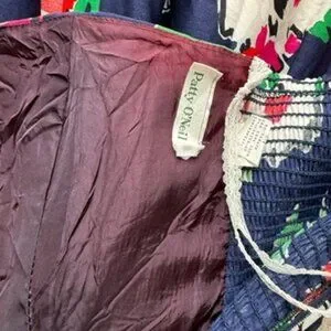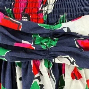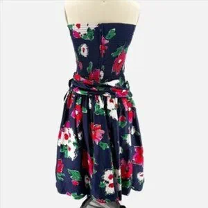 Patty O'Neil Floral Strapless Navy Blue Dress Kentucky Derby Prom 80s Vtg 6