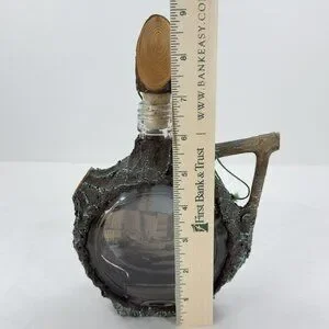 Vintage Austrian Decanter Glass Bottle Scenic Linz Tree Bark Design Cork Stopper