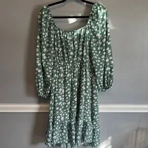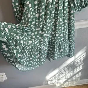 Embrace casual elegance with this SHEIN sundress, showcasing a delightful green and white color scheme. The dress features a v-neckline and 3/4 bishop sleeves, offering a stylish yet relaxed look. Its midi length and flowy design make it an ideal choice for a leisurely day out.