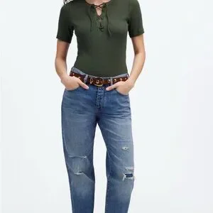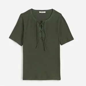 Stylish olive green top with lace-up front. Perfect for casual wear. NWT