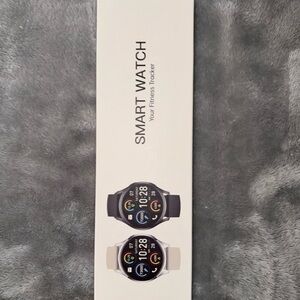 Elegant smartwatch featuring a sleek silver mesh band. Perfect for staying connected on the go and silicone band in box. Unused