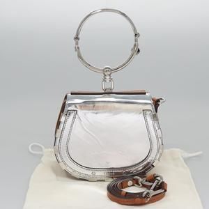 Chloe Nile Hand Bag Enamel Leather 2way Silver Brown Auth 101064