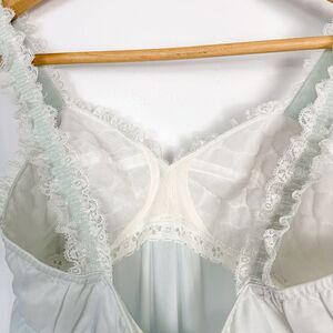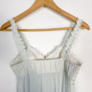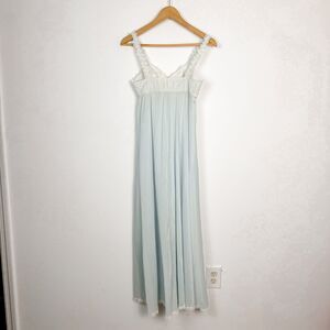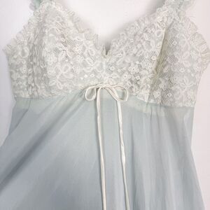 Vintage Olga 1970s/1980s Soft Blue White Floral Lace Chiffon Sheer Nightgown, size 34.