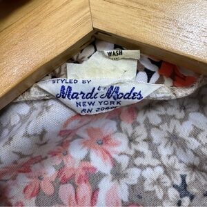 Mardi Modes New York ILGWU Vintage Floral Wide Collar Cap Sleeve Blouse USA