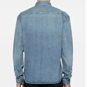 SAINT LAURENT YSL logo embroidered denim shirt