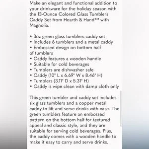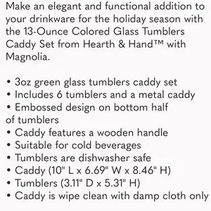 HEARTH & HAND NWT colored glass tumbler caddy set -13oz