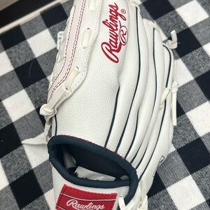 New without tags St. Louis Cardinals White Rawlings Glove for Left Hander PLS24 T-Ball Basket Web Glove. Gloves go on right hand for left hand throw. Item comes from a smoke free home and ships out within 1-2 business days.