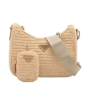 Prada Re-Edition 2005 Shoulder Bag Raffia Small Neutral