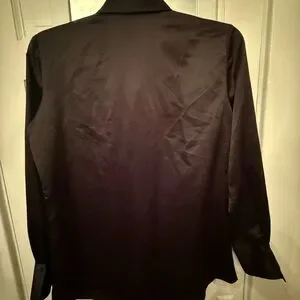 Beautiful and fun black tuxedo shirt in size L, black satin