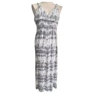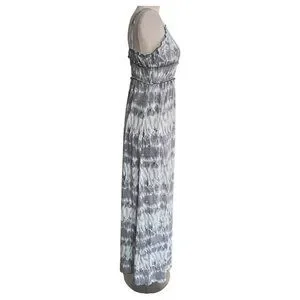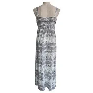 Tie-Dye Maxi Sun Dress By Feathers Spaghetti Straps High Waist Gray White Size M