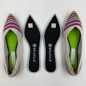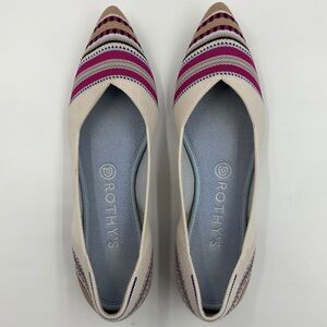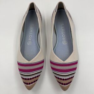 Rothy’s EUC Merino Point in Ivory Ribbon Stripe RETIRED STYLE Cream Pink Size 9