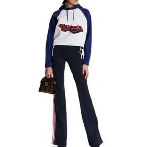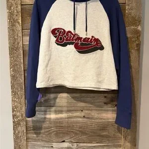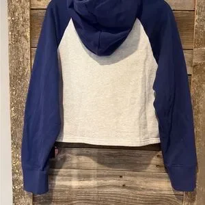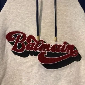 Stylish Balmain hoodie. Blue sleeves and hood. Grey body with bold logo; only worn once. Size L (but fits more like M). Retails for $990; purchased in London (Nov 24).